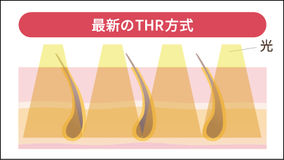 最新のTHR方式は光が安定して肌内部まで届くので、痛みも少なく、安全に、短期間で効果が実感できます。女性の産毛、男性のひげ、お肌が敏感なお子様など、これまで脱毛の難しかった部位にも効果を発揮します。